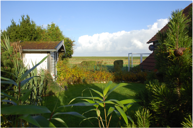 Die bevorzugte Ortsrandlage bietet einen grandiosen Blick auf den Störtebekerdeich.